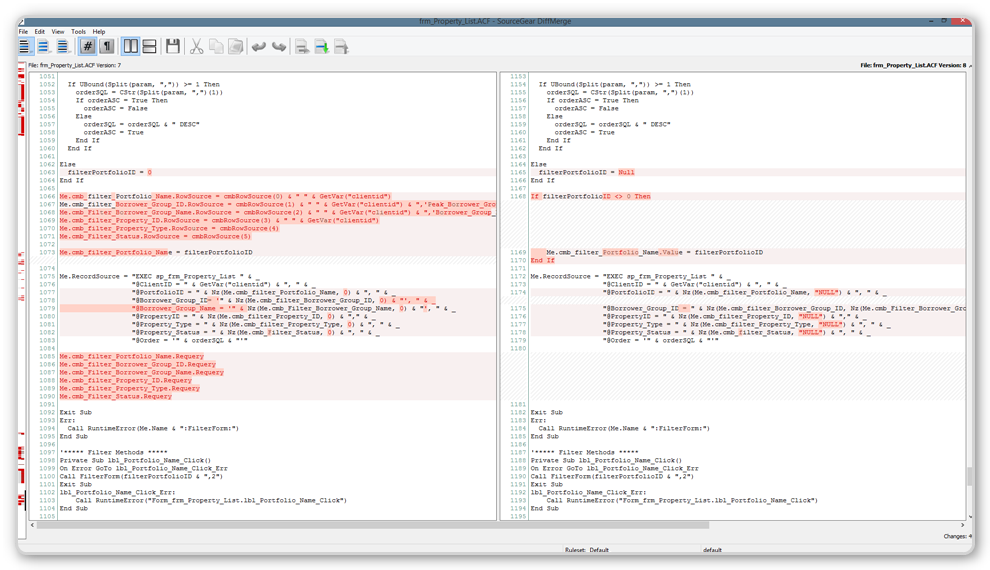 Dann könntest Du einfach eine beliebige Version in dieser Liste auswählen und auf Knopfdruck einen detaillierten Vergleich zur letzten fehlerfreien Version dieser Datei erhalten.